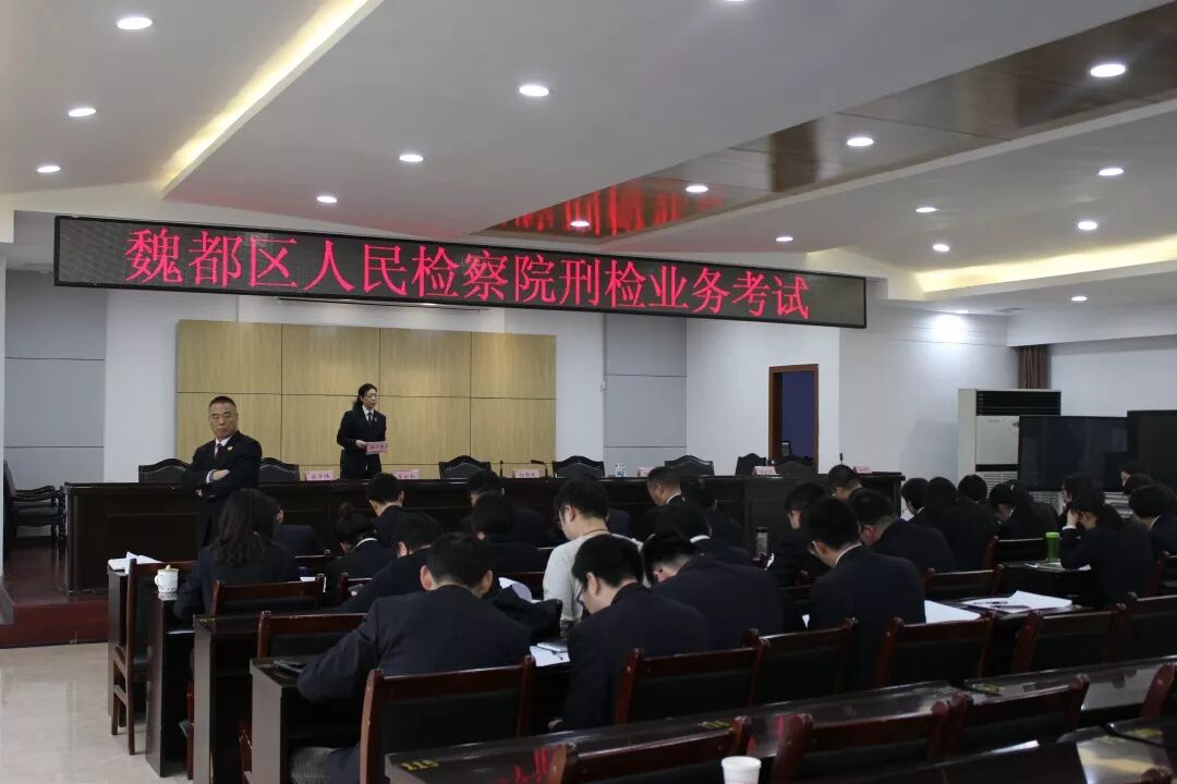 为期一周的刑事检察业务培训班圆满结束后,为提高培训质量,检验学习成果, 3月1日下午,魏都区人民检察院举办了刑事检察业务考试,对参加培训的50余名检察干警进行了考试。此次考试主要测试刑事检察业务培训班所培训的内容,全面考察了干警们的业务水平。参考干警普遍反映,此次考题不仅考察了《刑法》和《刑事诉讼法》的理论知识,还考察了办案技巧和具体实务,综合性强,为司法改革后捕诉一体化实施强化了理论基础。